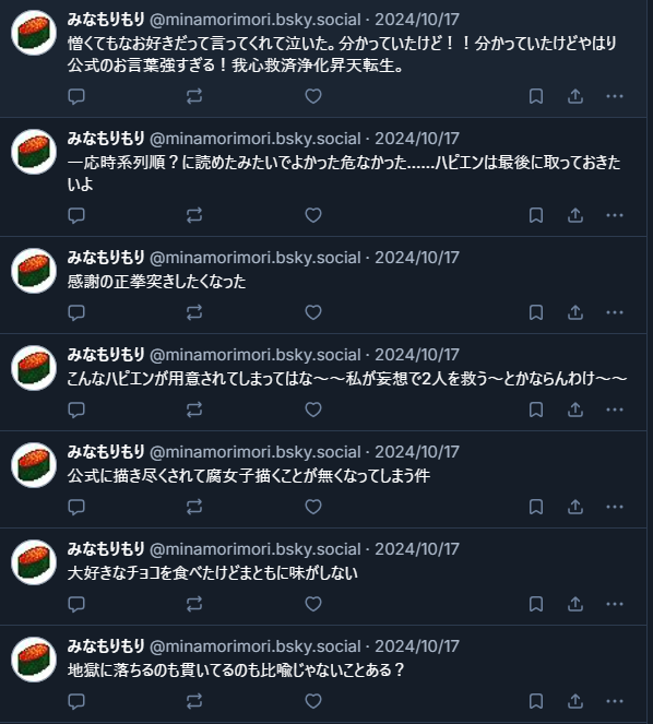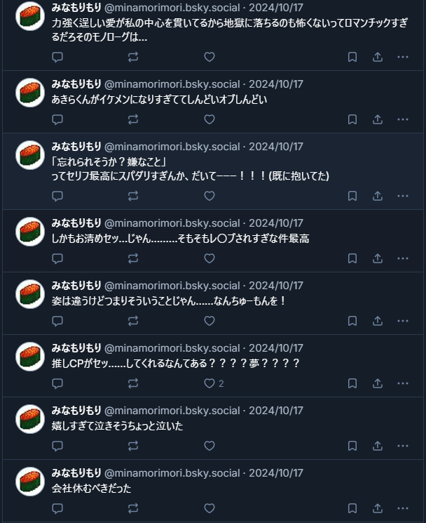 メッセだとガチ腐感想もくれて心がとっても元気になりました。