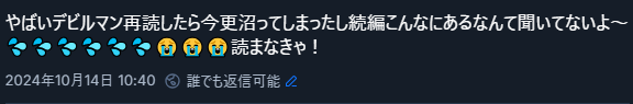 デビルマンはハマってそろそろ一年たつな~って思ってたら、過去のつぶやき見たら10月半ばにすでにハマっててとっくに1周年になってた!!
