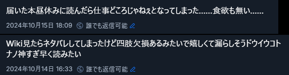 読んだ後ずっとハマった衝撃で食欲無かったね…食欲無いなんて人生で2回目だよ